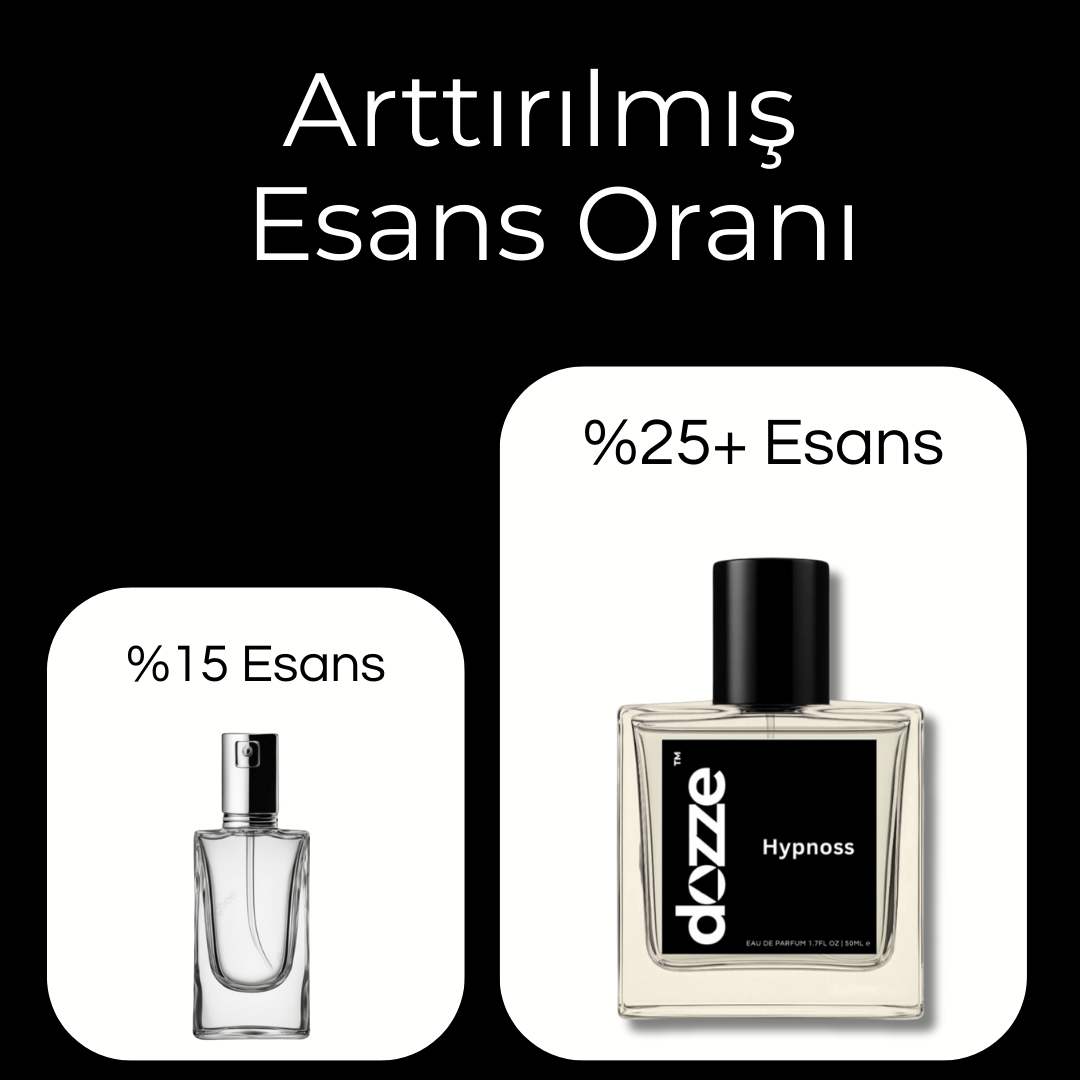 Standart parfümlerin ötesinde formülüyle Dozza Hypnoss, tek kullanımda gün boyu süren iz bırakır.